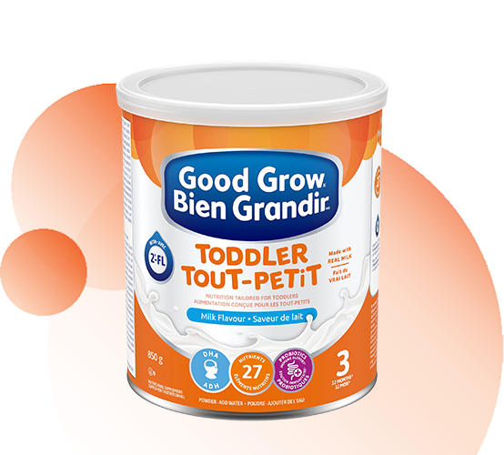 With 27 essential nutrients for your toddler’s development, including iron, calcium, and vitamin D, Good Grow® toddler drink is a great way to help support your growing child’s nutritional needs. Iron helps support normal cognitive development in toddlers and young children. Calcium and vitamin D helps build strong bones and teeth.