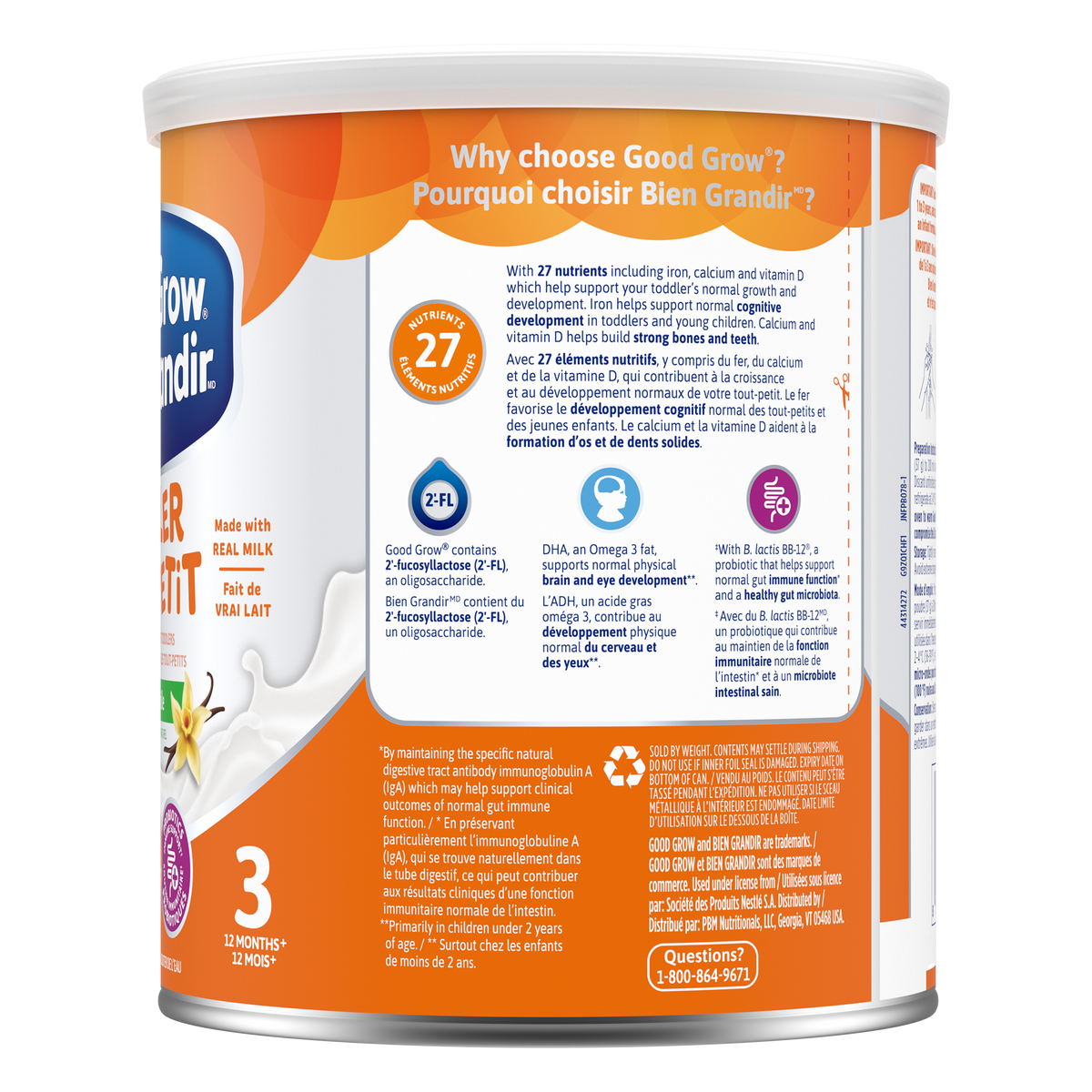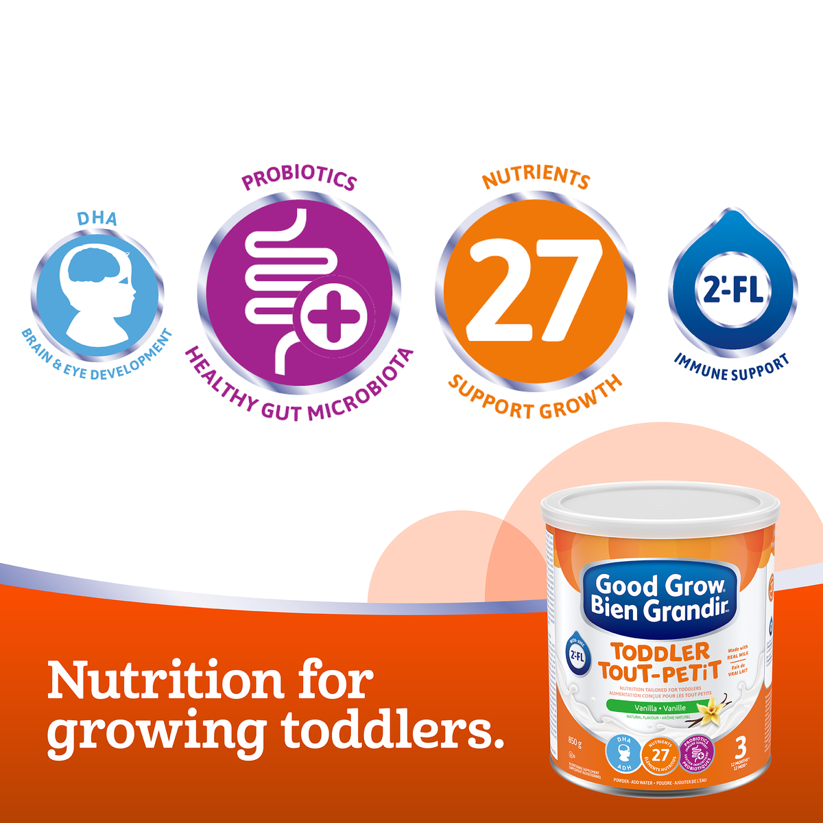 - Nutrition tailored for growing toddlers. Good Grow® Nutritional Toddler Drink in vanilla flavour is an everyday toddler drink to complement the nutritional needs of toddlers 1 to 3 years old.