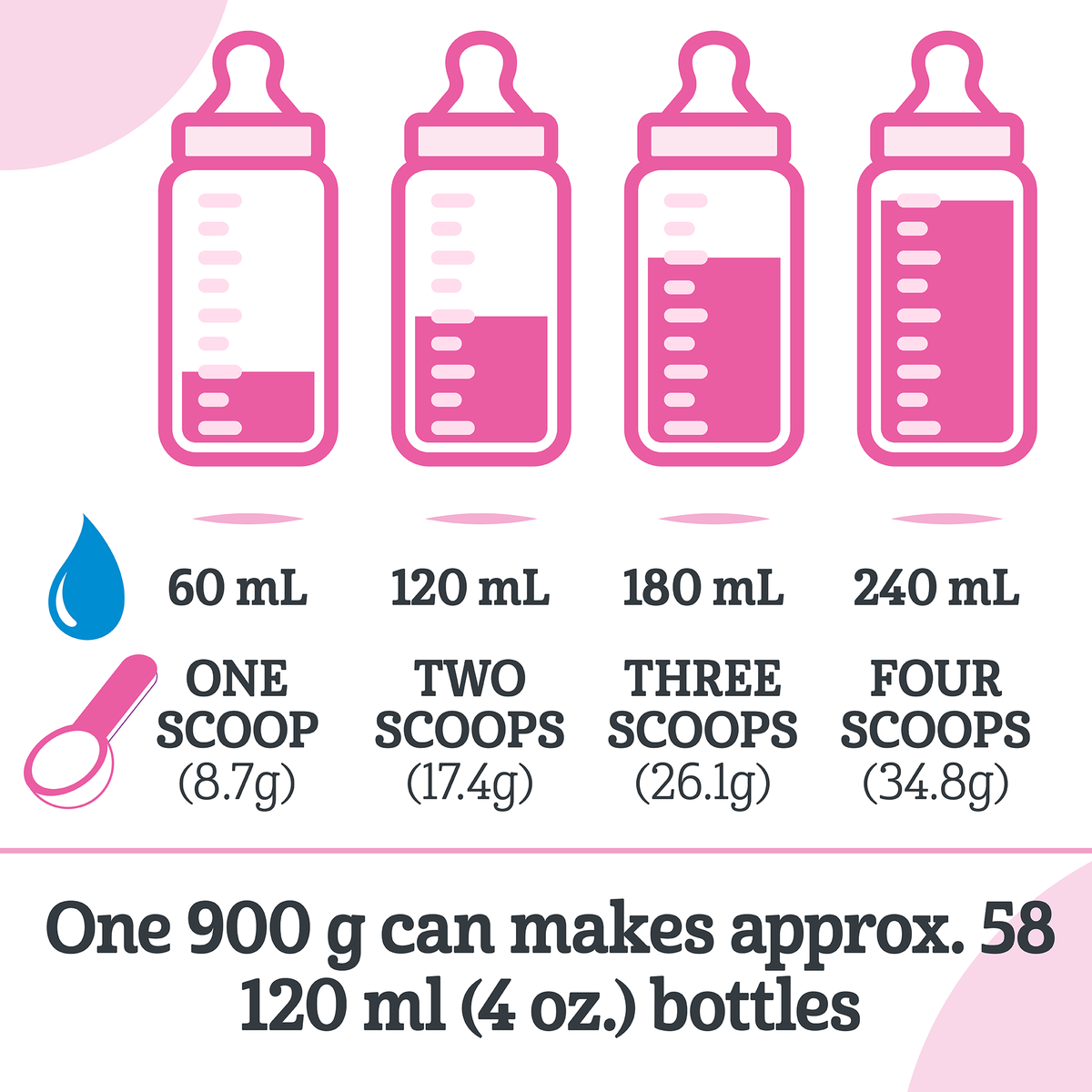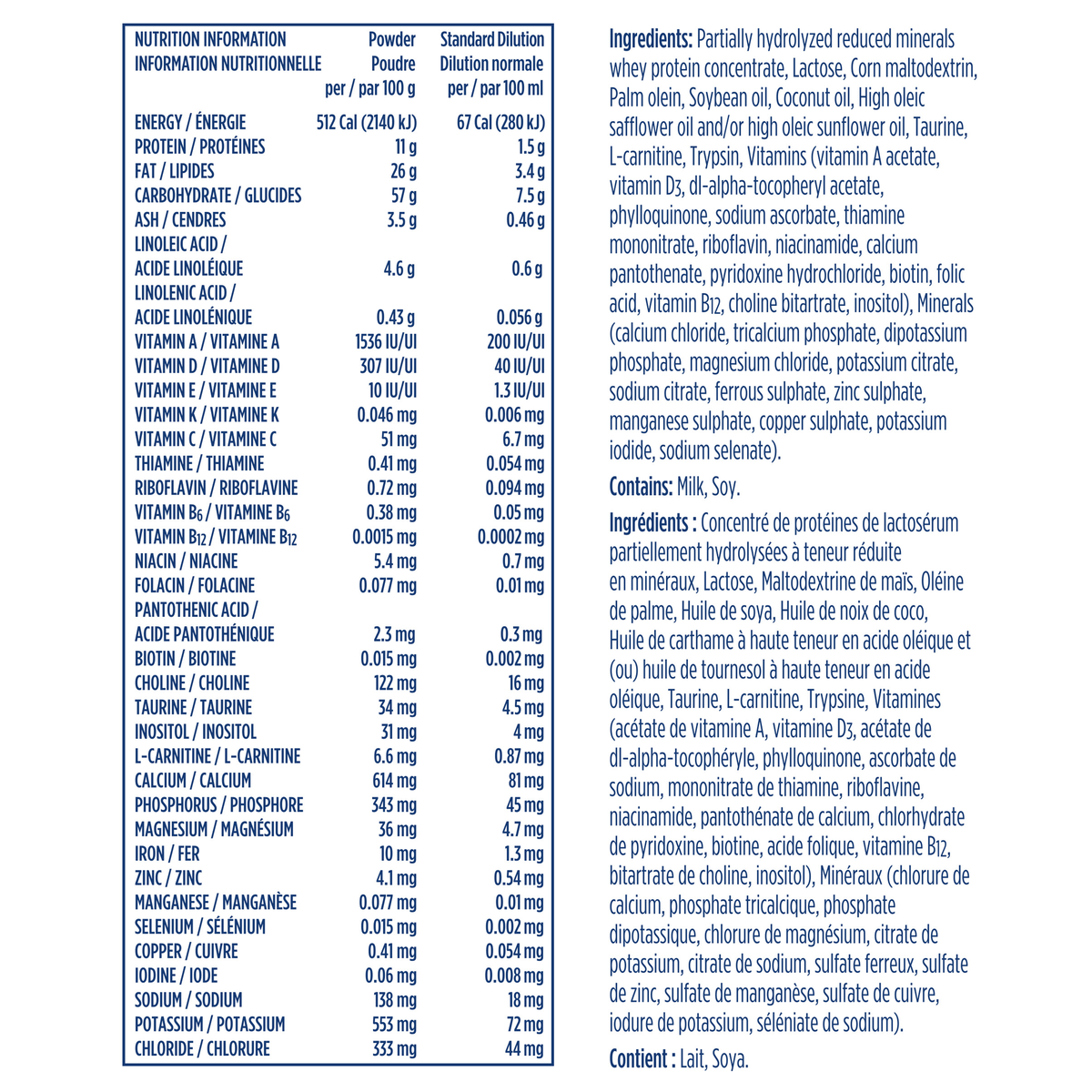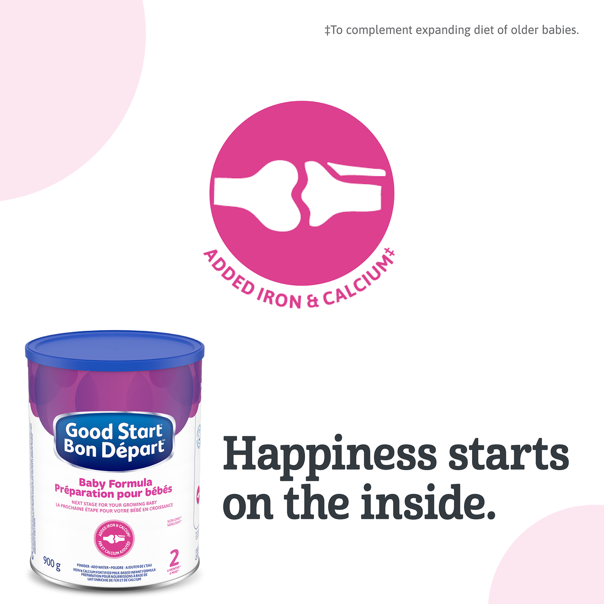 - Conçu pour compléter l’alimentation des bébés plus âgés qui se diversifie, avec fer et calcium ajoutés. Le fer est important pour la fabrication des globules rouges et le calcium contribue à la formation d’os et de dents solides.