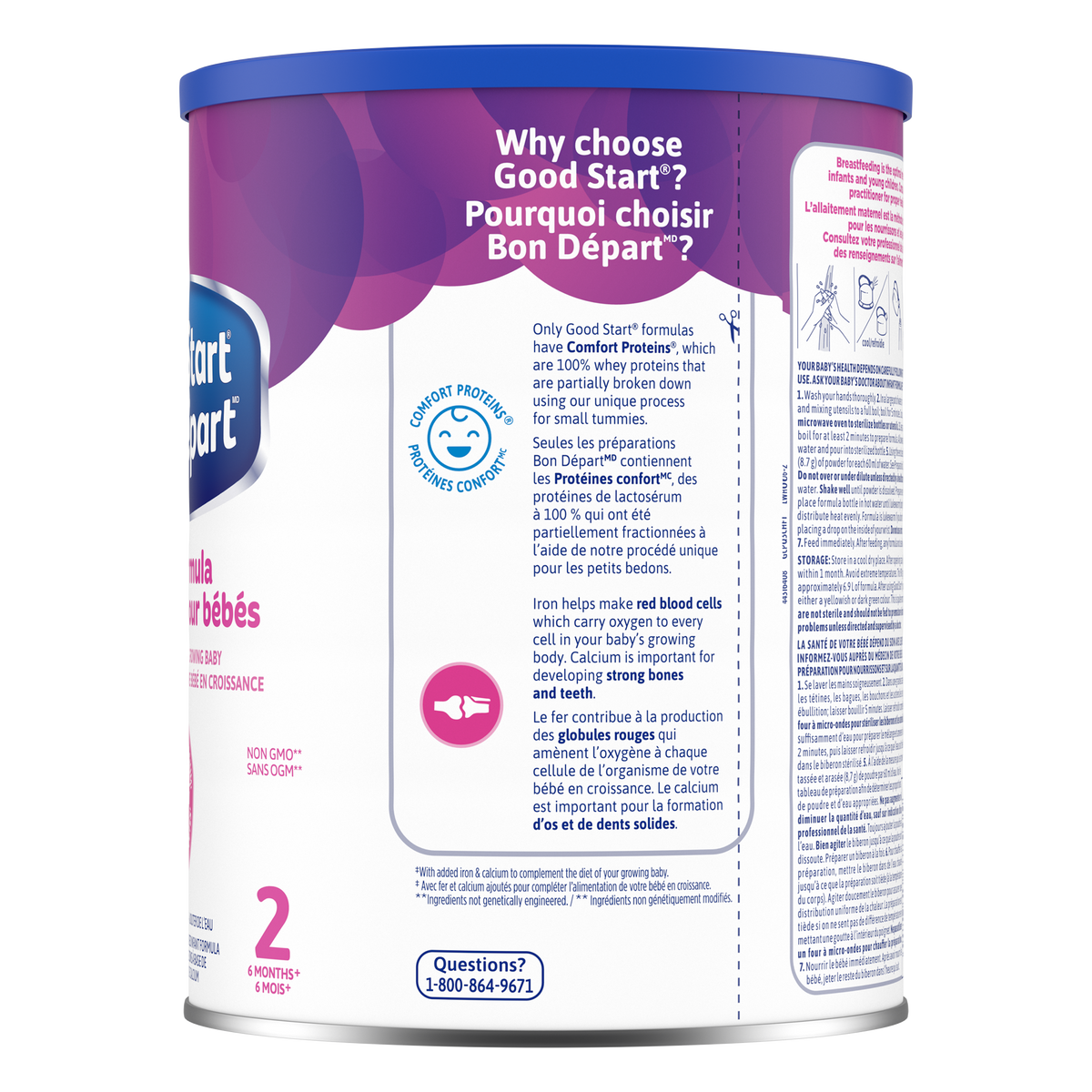 - Seules les préparations Bon DépartMD contiennent des Protéines ConfortMC, qui sont 100 % de protéines de lactosérum partiellement fractionnées en plus petites particules pour les petits bedons