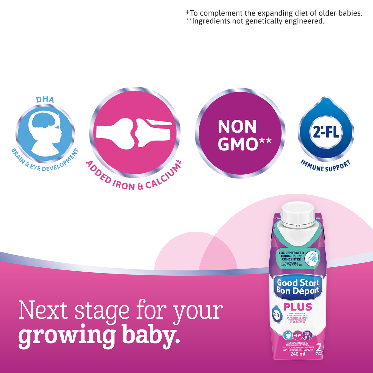 La prochaine étape de préparation pour votre bébé en pleine croissance avec du fer et du calcium ajoutés, des Protéines ConfortMC, de l’ADH et du 2'-FL. Ajoutez simplement de l’eau comme indiqué et agitez bien.